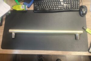 Un ejemplo representativo de nuestro trabajo es la fabricación de asas metálicas de latón soldadas a soportes de acero, diseñadas para su instalación en puertas metálicas. Este tipo de pieza requiere una gran precisión tanto en el diseño como en el proceso de fabricación, especialmente en la unión entre metales diferentes.